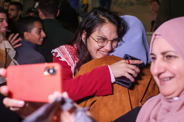 ![Raghad Fan (C) a Palestinian prisoner held in an Israeli prison is greeted by her family on her release under a truce deal between Israel and Hamas in exchange for hostages held in Gaza, in Baytunia in the occupied West Bank on November 24, 2023. After 48 days of gunfire and bombardment that claimed thousands of lives, the first hostages to be released under a truce deal between Israel and Hamas were handed over on November 24, both sides said, nearly seven weeks after they were seized. (Photo by AHMAD GHARABLI / AFP) / "The erroneous mention[s] appearing in the metadata of this photo by AHMAD GHARABLI has been modified in AFP systems in the following manner: [Raghad Fan] instead of [Hanin Barghouti]. Please immediately remove the erroneous mention[s] from all your online services and delete it (them) from your servers. If you have been authorized by AFP to distribute it (them) to third parties, please ensure that the same actions are carried out by them. Failure to promptly comply with these instructions will entail liability on your part for any continued or post notification usage. Therefore we thank you very much for all your attention and prompt action. We are sorry for the inconvenience this notification may cause and remain at your disposal for any further information you may require." (Photo by AHMAD GHARABLI/AFP via Getty Images)](https://img.huffingtonpost.com/asset/65611d13230000df71ea6577.jpeg?ops=scalefit_720_noupscale)